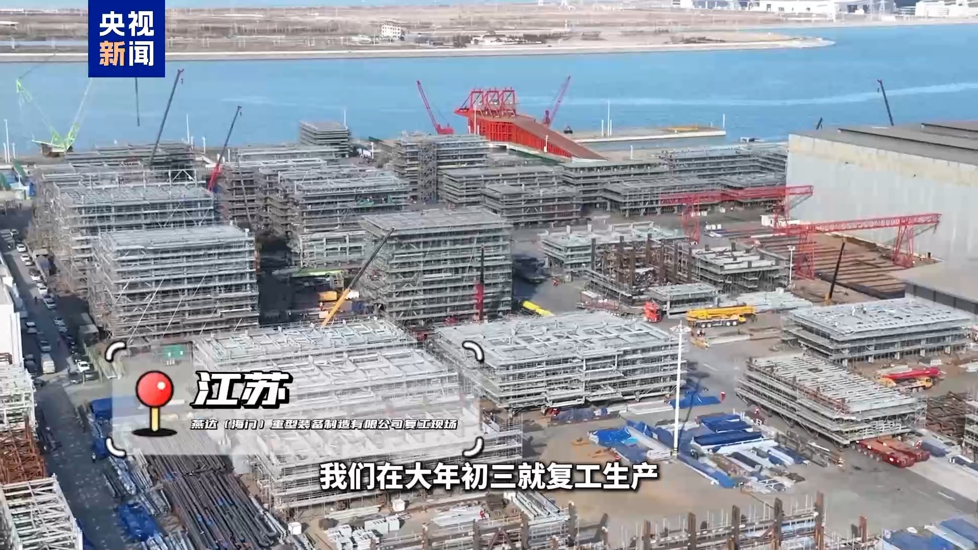 燕达(海门)重型装备制造有限公司副总经理黄淞:我们在大年初三就复工生产 ,一季度会有更多的海外订单。